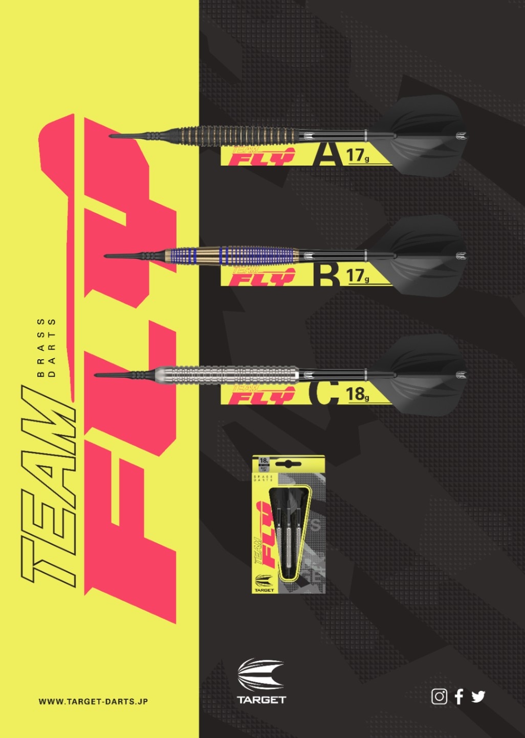 TARGET 『TEAM FLY』シリーズ TARGETが日本市場向けとして初開発した本格的なブラスダーツセット 『初心者でも投げやすい』をコンセプトにデザイン 付属のケースは日本では未発表のTARGET製『トライ WALLET』で持ち運びも簡単 予備用のフライト2セット(6個)シャフト2セット(6個)シャフトリング2セット(6個)が付属されているので、消耗品の交換がすぐに可能な充実のセット内容 これから本格的にダーツを始めたいと考えている方に最適! 【バレルの特徴】 トルピード型と言われる砲弾のような形状をしたバレル。 初心者でも気持ちよく『飛ばせる』形状として人気のバレル。